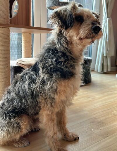 Benji hat sich in der Obhut seiner Pflegestelle wunderbar entwickelt. Er ist ein anhänglicher, menschenbezogener Hund, der jede Streicheleinheit genießt und sich über Aufmerksamkeit und Spaziergänge sehr freut. Er ist stubenrein und läuft bereits brav an der Leine.