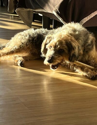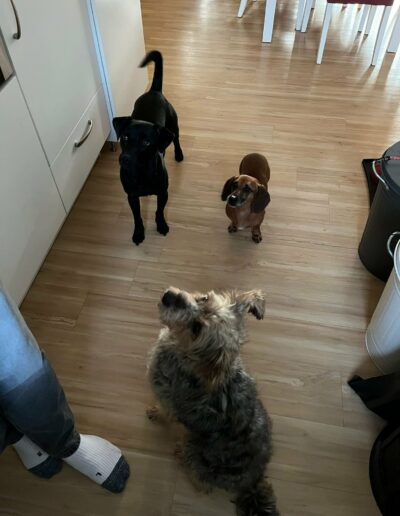 Einer tierlieben Familie gelang es schließlich, den schüchternen Rüden mit Futter anzulocken. Benji nahm es dankbar an – und das war der Beginn seines neuen Lebens. Unsere Tierschutzfreundin Iza, die in Mezőtúr lebt, erklärte sich sofort bereit, Benji bei sich aufzunehmen, bis er nach Deutschland ausreisen darf. So blieb ihm der Weg ins Tierheim erspart.