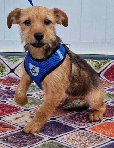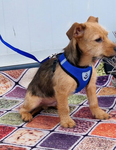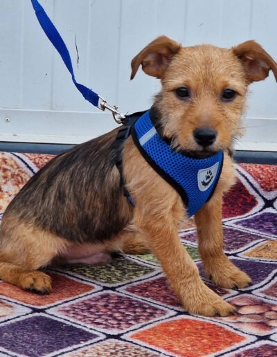 Kalmi ist offen, welpentypisch verspielt und menschenbezogen. Trotz seines schwierigen Starts ins Leben ist er ein fröhliches Hundekind, das Nähe und Zuwendung genießt.