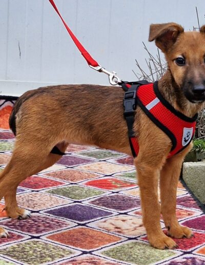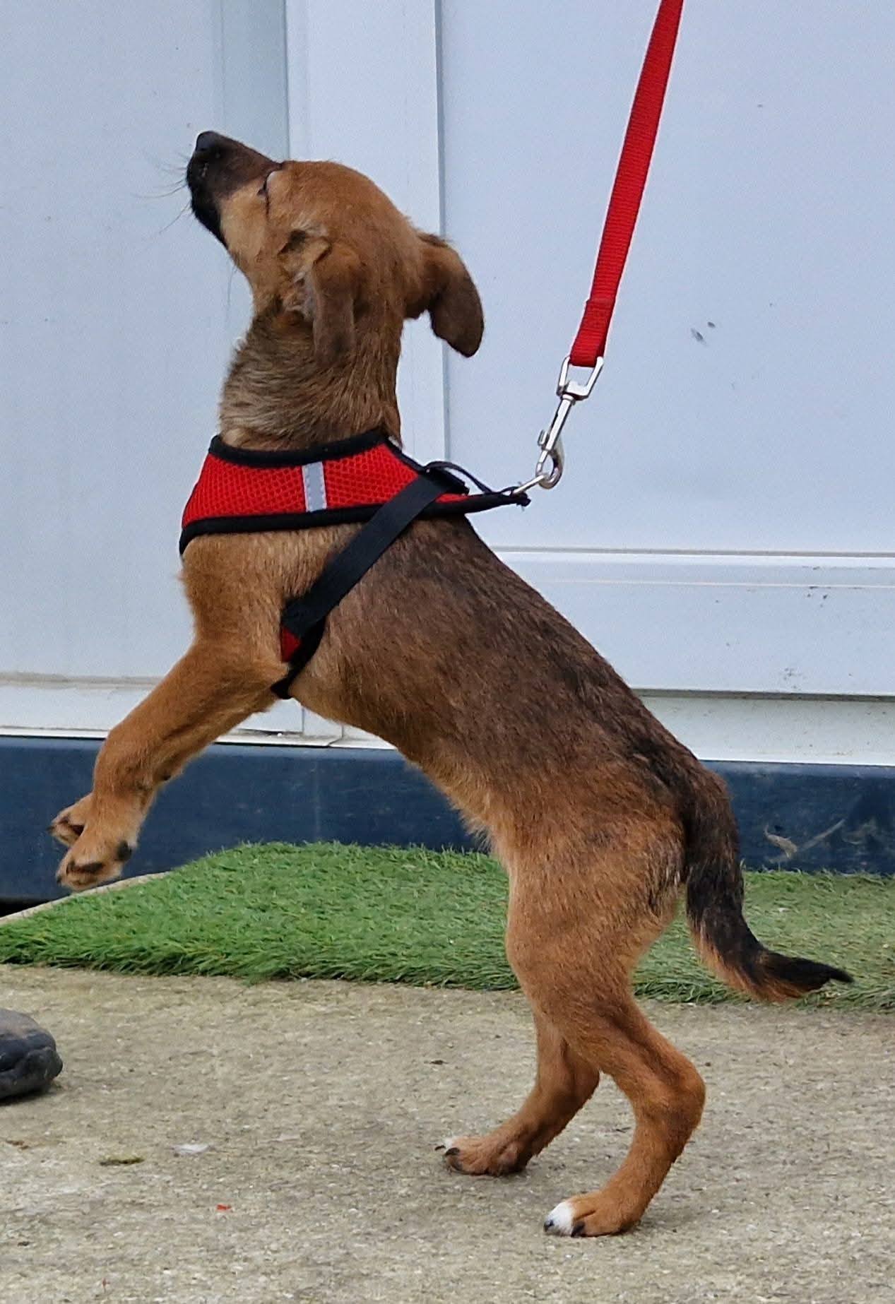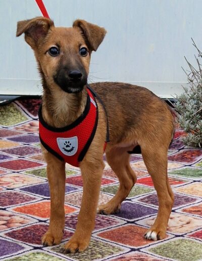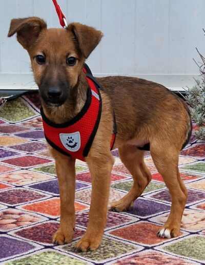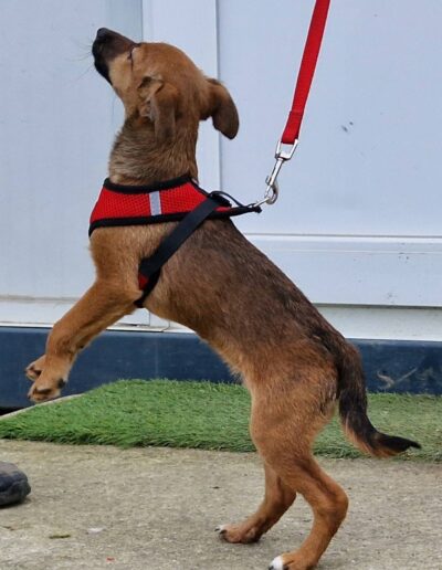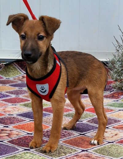 Dalia ist sehr zart, lieb und verspielt. Anfangs manchmal noch etwas ängstlich, taut sie schnell auf. Mit anderen Hunden versteht sie sich bestens und wächst in einer großen Hundegruppe auf.