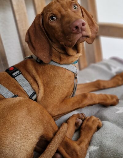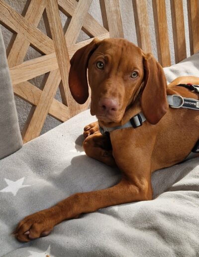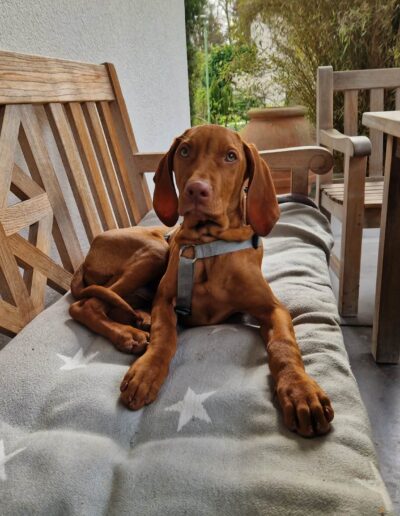 Der Magyar Vizsla ist ein sensibler, extrem menschenbezogener Jagdhund, gezüchtet für enge Zusammenarbeit mit seinem Menschen. Er braucht liebevolle Führung, Ruhetraining und sinnvolle Aufgaben – keine Dauerbespaßung.